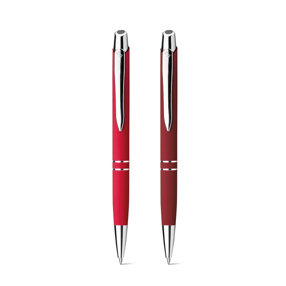 Bolígrafo de aluminio con acabado engomado y clip. Disponible en una amplia gama de colores. Tinta azul. ø11 x 139 mm