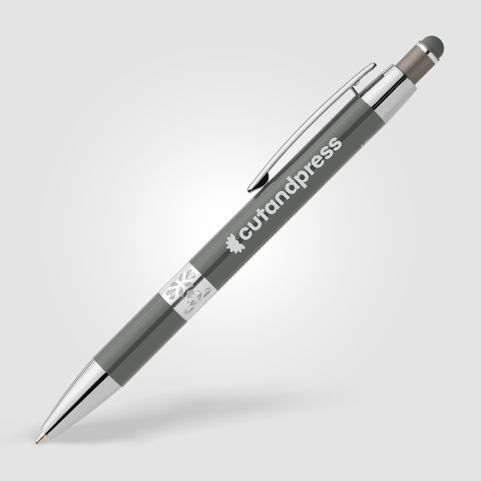 Adorn Recycled Aluminium Chrome Trim Stylus Pen - Gunmetal / 4 Colour inkjet