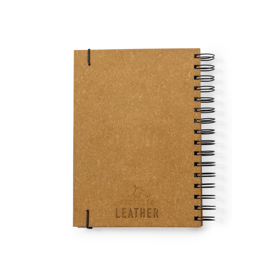 Agenda de tamaño A5 fabricada en elegante y sostenible cuero reciclado. Con cubiertas rígidas y elástico de cierre. Con distintivo cuero reciclado.Diseño página día, zona de anotaciones por día y páginas con esquina troquelada para marcar el día. En 2 idiomas: castellano e inglés. Presentado en caja kraft. El cuero reciclado rescata las fibras desechadas en los procesos de fabricación del cuero, minimizando el desperdicio de material, contribuyendo a reducir el impacto ambiental y manteniendo a la vez sus propiedades originales. Página Día