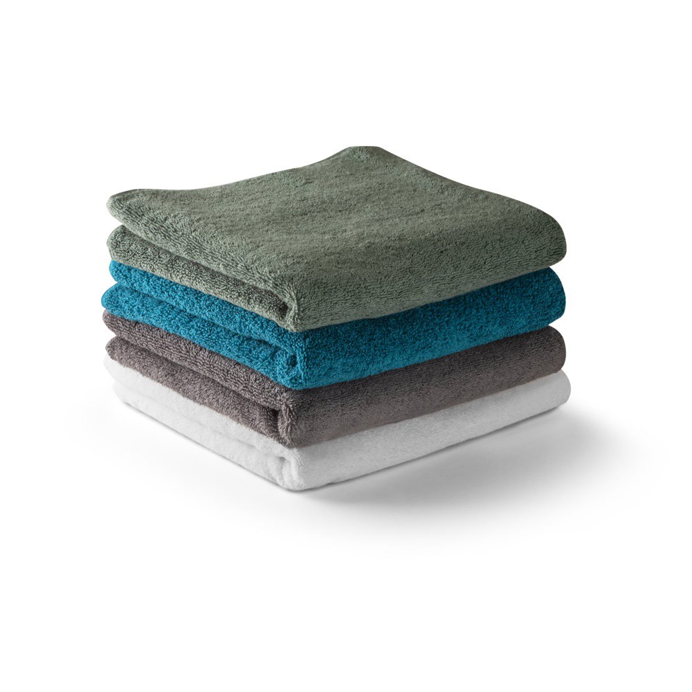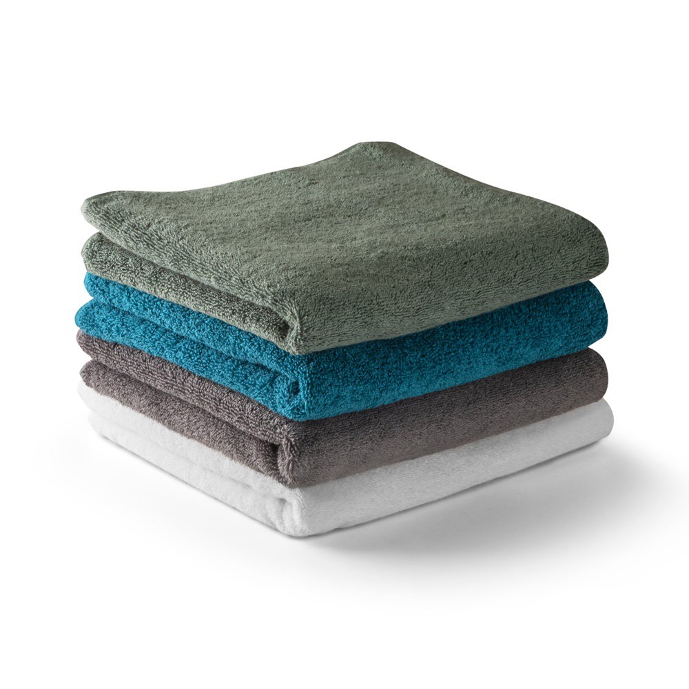 Toalla facial (500 g/m²) en algodón (82%) y algodón reciclado (18%). Fabricado en Europa. 1000 x 500 mm