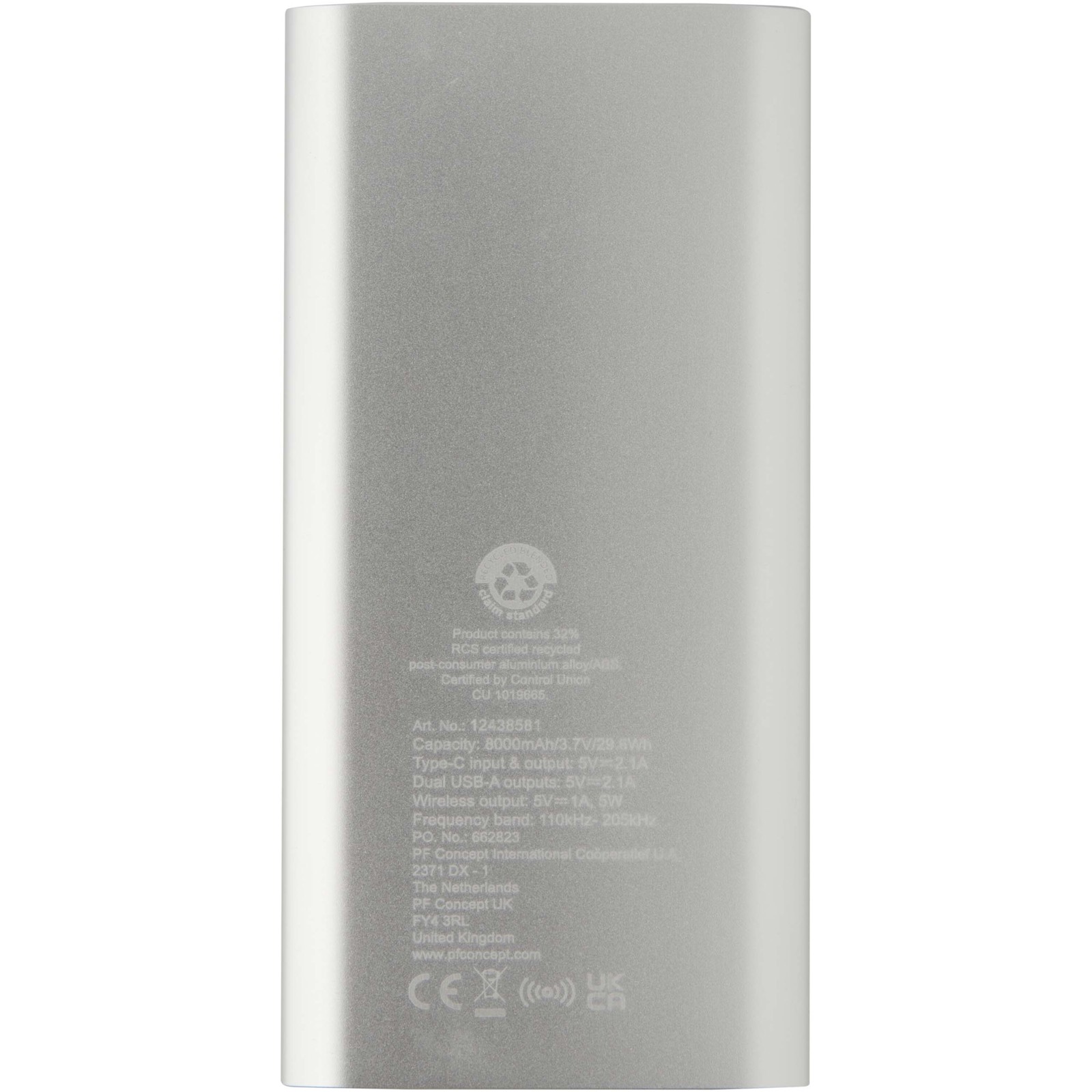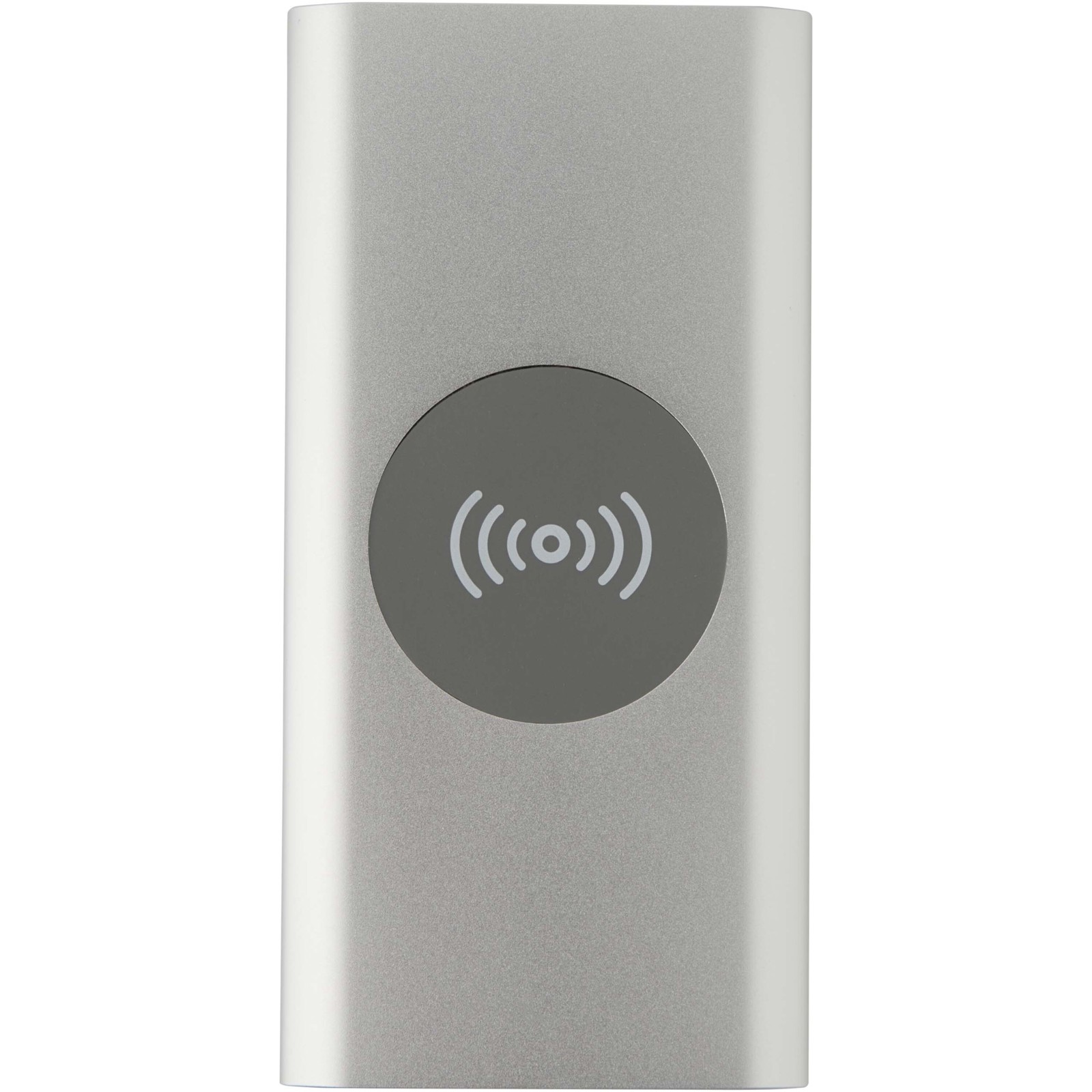 Batería externa inalámbrica tipo C de aluminio reciclado de 8000 mAh "Juice" - Plateado