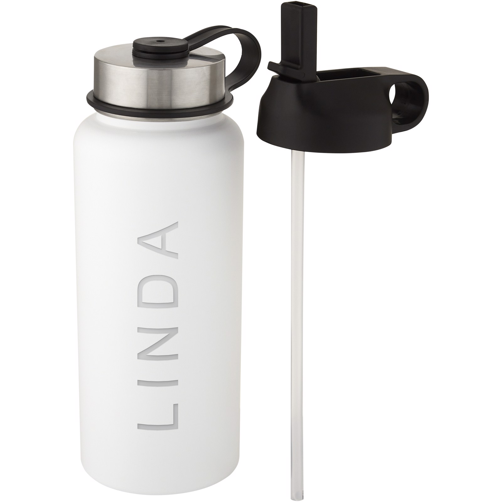 Bidón deportivo de doble pared de acero inoxidable dos en uno con aislamiento de cobre al vacío y 2 tapas: una con una pajita para beber fácilmente y una de rosca a prueba de fugas con un asa para transportarlo. La construcción con aislamiento de acero inoxidable 18/8 previene la condensación en el exterior de la botella, y el acabado con recubrimiento en polvo a la moda lo hace más duradero. Amplia abertura para facilitar el llenado, vertido y limpieza. No contiene BPA y se ha probado y homologado según la legislación alemana sobre seguridad alimentaria (LFGB). Contenido de ftalatos probado y homologado según la normativa REACH. Perfecta para cubitos de hielo. Tiene una capacidad de 1 litros. Se recomienda lavarla a mano. Se presenta en una caja de regalo de cartón reciclado.