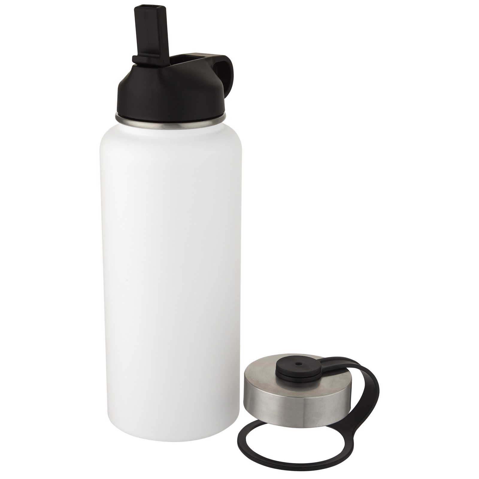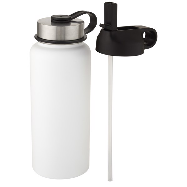 Bidón deportivo con aislamiento de cobre al vacío de 1 l con 2 tapas "Supra" - Blanco