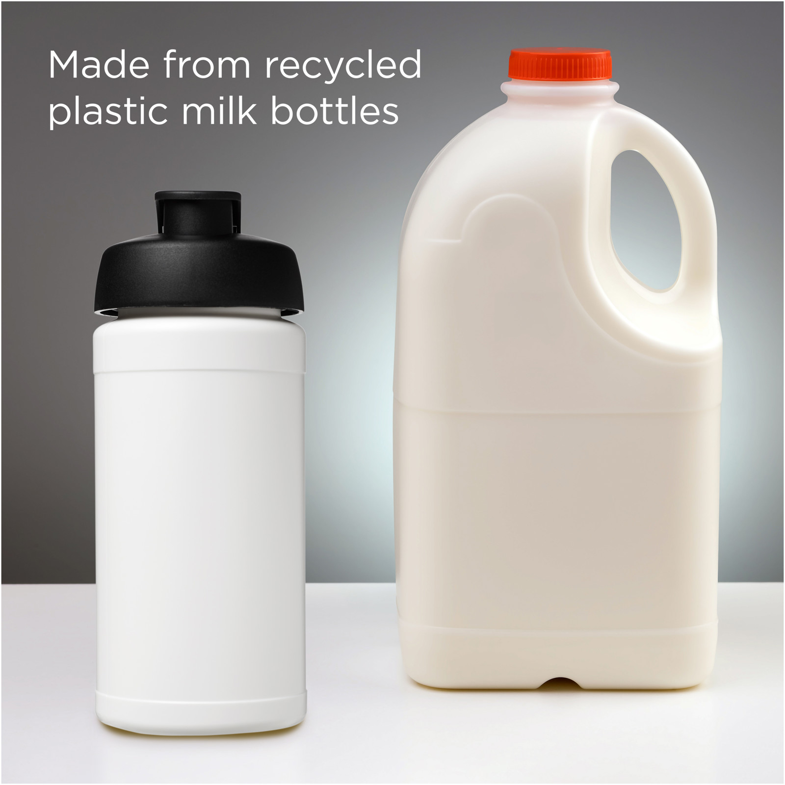 Este bidón deportivo de una capa transforma las botellas de leche de plástico de un solo uso en algo reutilizable. El bidón cuenta con una tapa a prueba de derrames con cierre Flip y una capacidad de 500 ml. Debido a la naturaleza del plástico reciclado, las tonalidades pueden variar ligeramente y puede haber pequeñas manchas de colores. Fabricado en el Reino Unido.