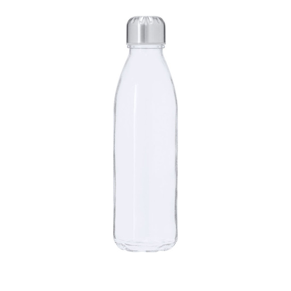 Bidón en Cristal Reciclado de 650 ml de capacidad y tapón en acero inox, libre de BPA. Incluye distintivo de Recycled Glass. 650 ml