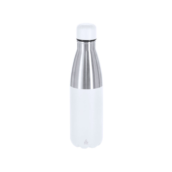 Bidón térmico de 550 ml de capacidad, fabricado en acero inox reciclado de doble pared. Su diseño combina cuerpo en acabado silver con tapón a rosca y base en color mate a juego. Libre de BPA. Incluye distintivo de acero inox reciclado.El acero es uno de los materiales más demandados y que puede encontrarse casi en todas partes, desde productos de uso diario a grandes construcciones. Con innumerables propiedades, entre las que cabe destacar la durabilidad y su alto grado de reutilización, convirtiéndolo en una alternativa muy valorada en soluciones de sostenibilidad. Debidamente tratado, permite obtener nuevos recursos de infinita utilización. 550 ml