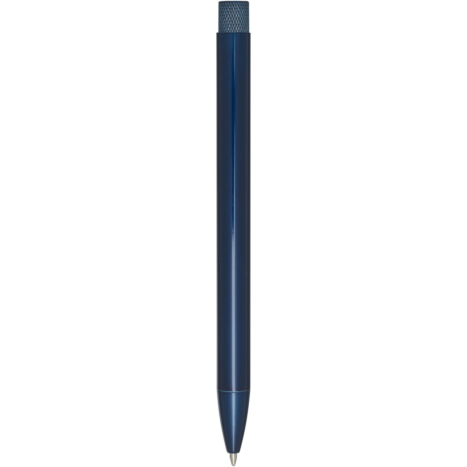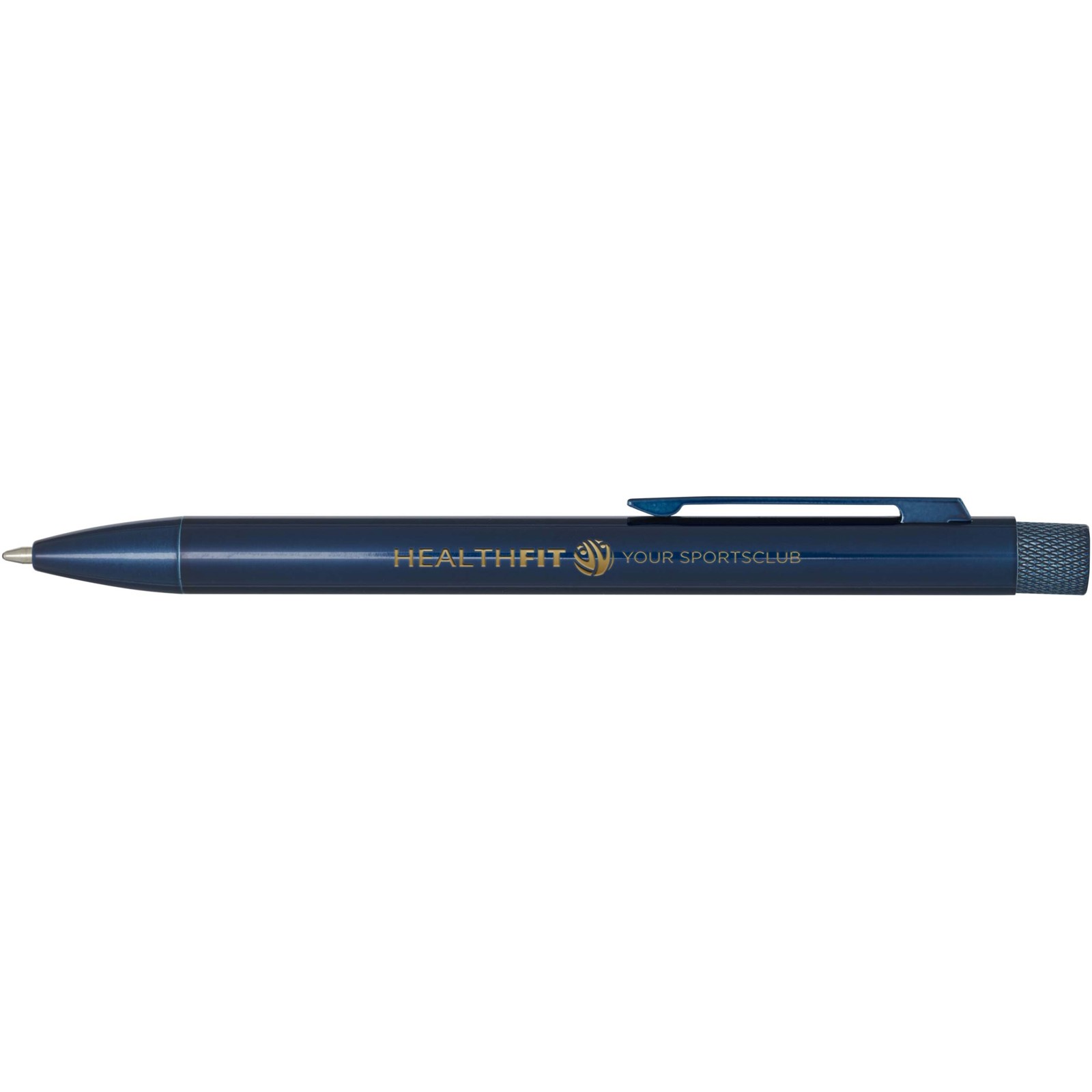 Bolígrafo con revestimiento pulverizado de color. El botón y la punta son de latón, el cuerpo es de latón reciclado y el clip, de hierro. Color de la tinta: Azul. Longitud de escritura: 1000 metros. Tamaño del plumín: 1,0 mm. Se entrega en una caja de regalo.