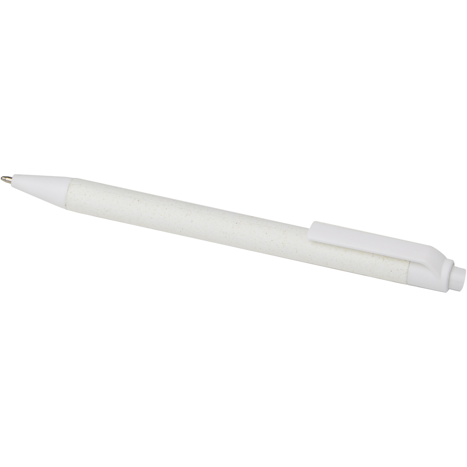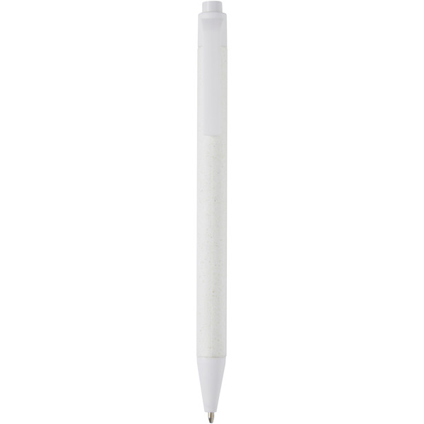 Bolígrafo ligero para tomar notas en el día a día. El cuerpo está fabricado con papel arrugado de origen responsable. El papel marrón contiene el residuo del café, el verde de las aceitunas y el blanco del maíz. La parte inferior, el clip y la punta están hechas de plástico PLA. Tinta negra. Longitud de escritura: 700 metros.