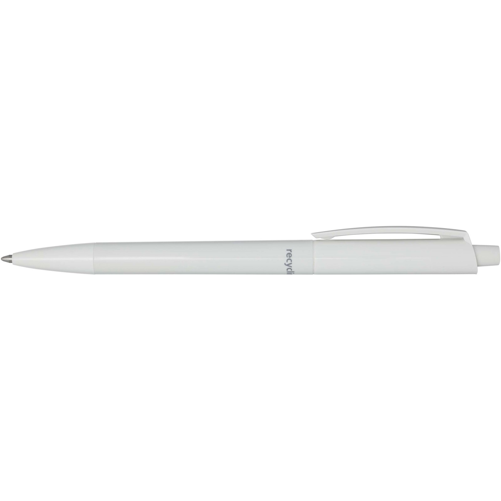 Bolígrafo de plástico reciclado. Color de la tinta: Negro. Longitud de escritura: 3000 metros. Tamaño del plumín: 1,00 mm. Fabricado en Alemania.
