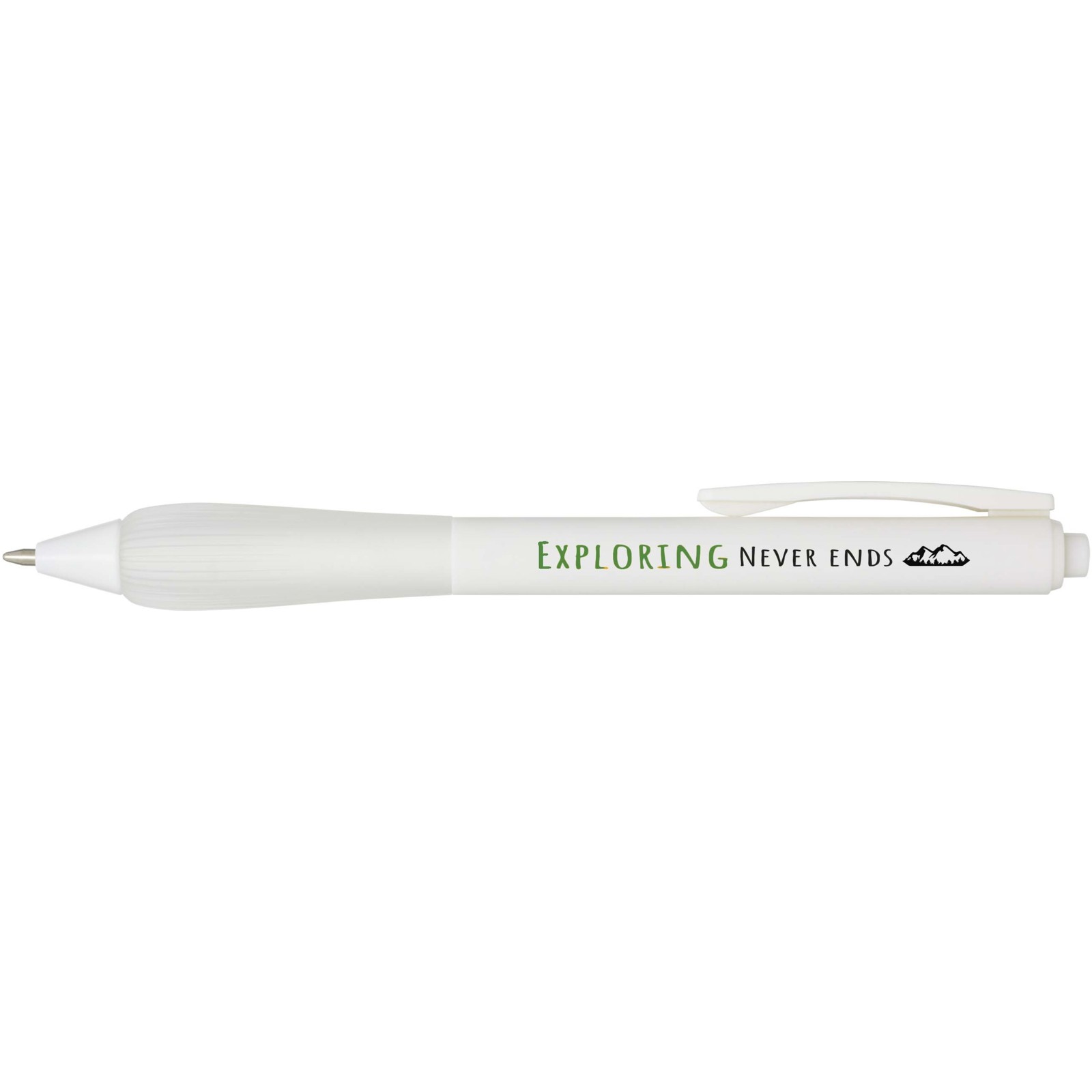 Bolígrafo de plástico reciclado con cuerpo recubierto de goma y empuñadura de TPR. Color de la tinta: Azul. Longitud de escritura: 1000 metros. Tamaño del plumín: 1,0 mm.