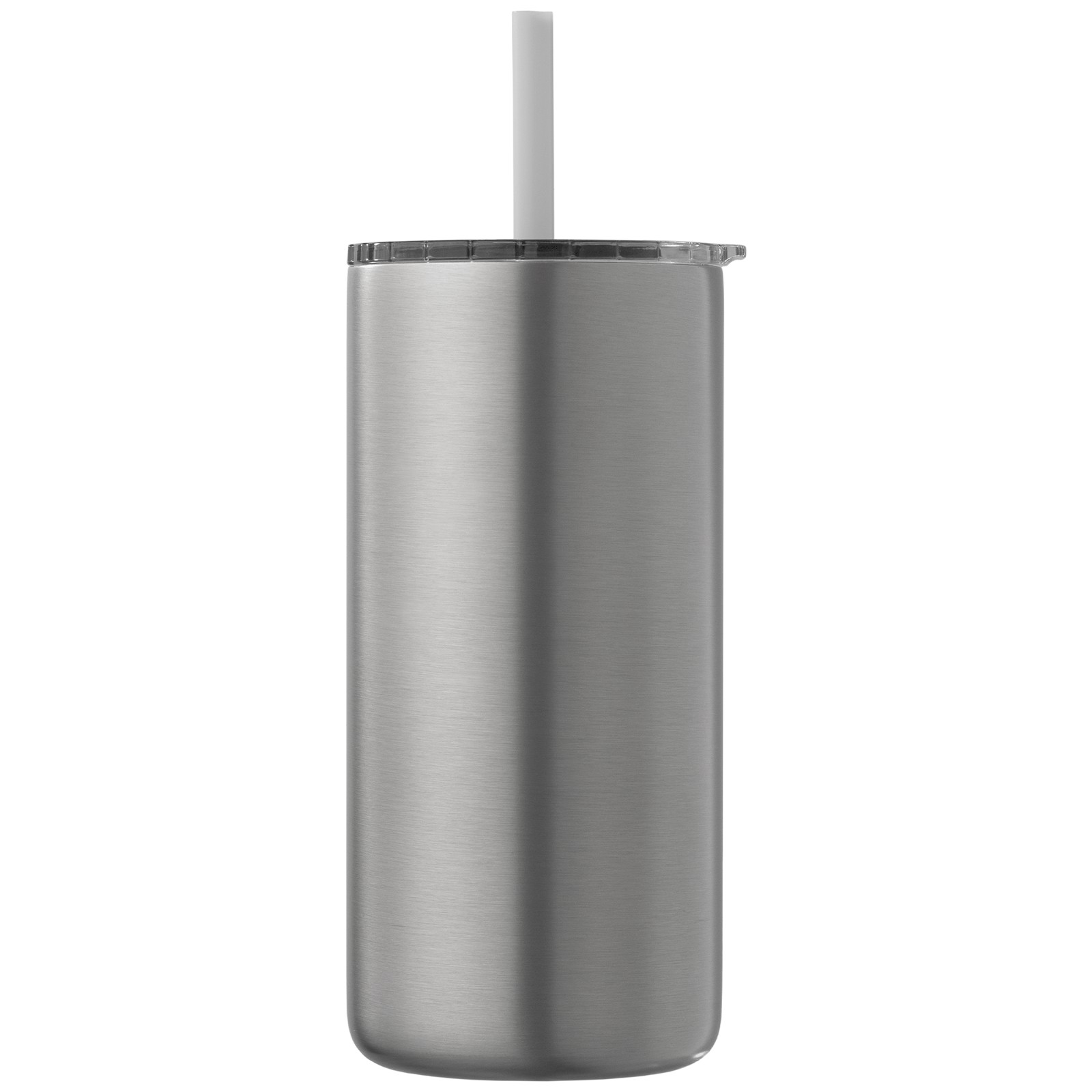 Borealis Recycled Stainless Steel Straw Tumbler - 475 ml - Chrome / Silkscreen