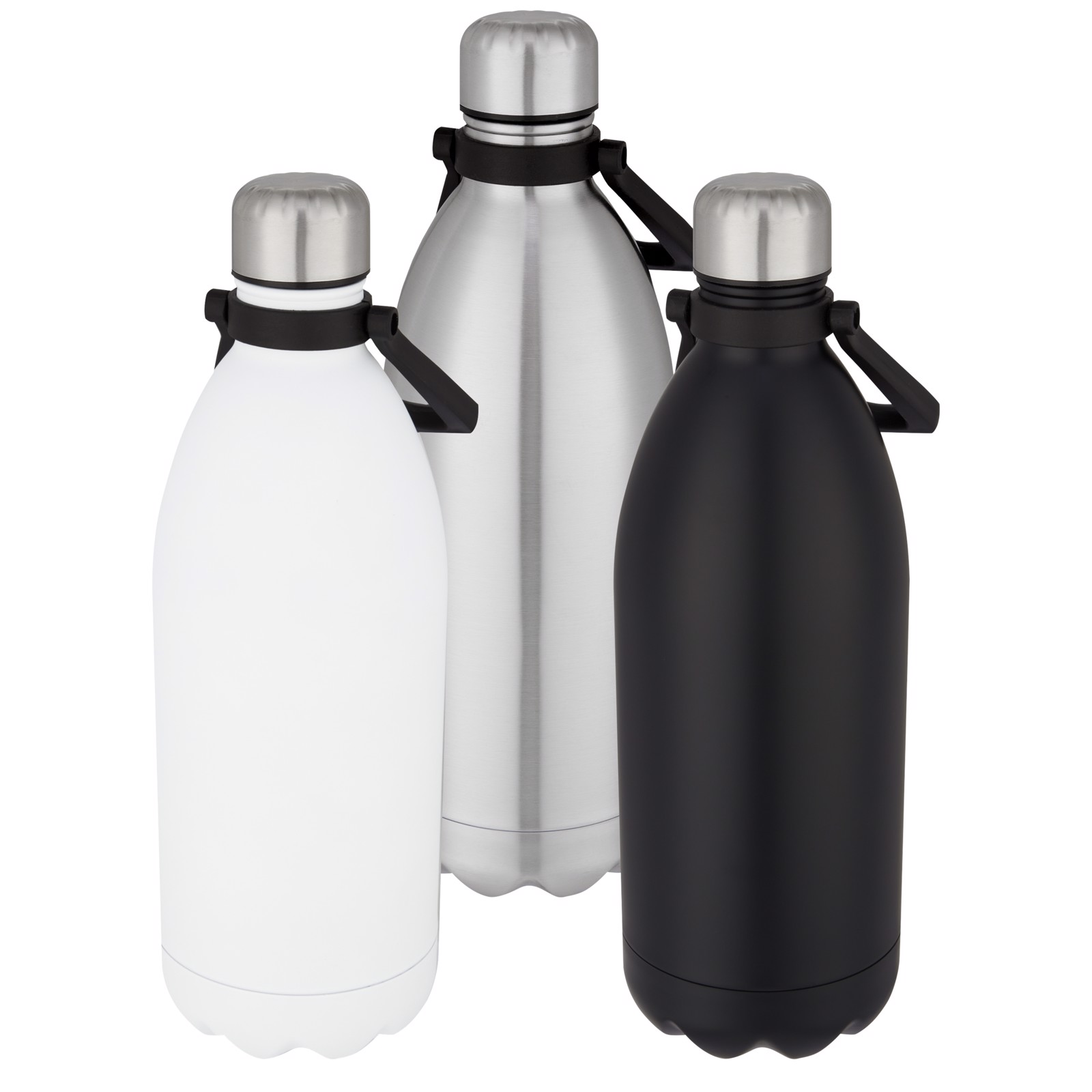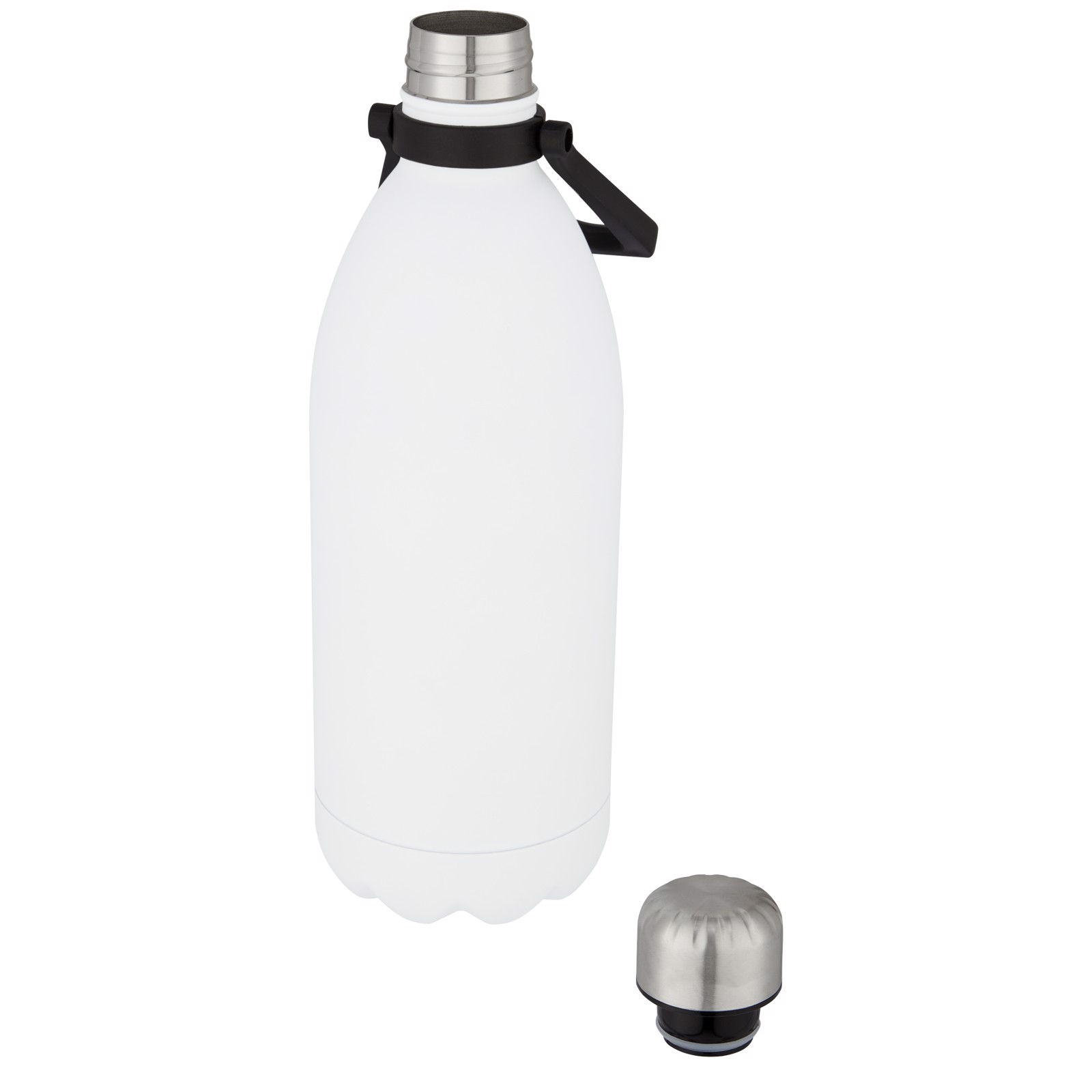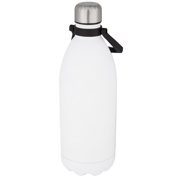 Botella de acero inoxidable con aislamiento al vacío extragrande y un diseño icónico con una asa cómoda para facilitar su transporte. No contiene BPA y se ha probado y homologado según la legislación alemana sobre seguridad alimentaria (LFGB). Contenido de ftalatos probado y homologado según la normativa REACH. Tiene una capacidad de 1,5 L. Se recomienda lavarla a mano. Se presenta en una caja de regalo de cartón reciclado. Mantiene las bebidas calientes durante 12 horas y frías durante 48 horas.