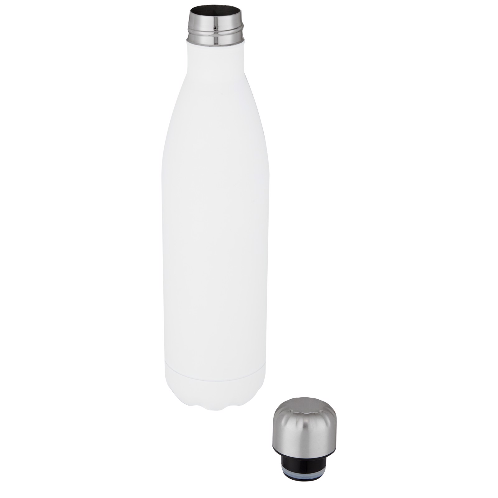 Botella de acero inoxidable con aislamiento al vacío y un diseño icónico. El acero inoxidable 18/8 con aislamiento mantiene las bebidas calientes hasta 12 horas y las bebidas frías hasta 48 horas. Sin BPA, probada y homologada conforme a la legislación alemana sobre seguridad alimentaria (LFGB), y comprobado el contenido de ftalatos según la normativa REACH. La capacidad de volumen es de 750 ml. Se recomienda lavar a mano. Presentado en una caja de regalo de cartón reciclado.