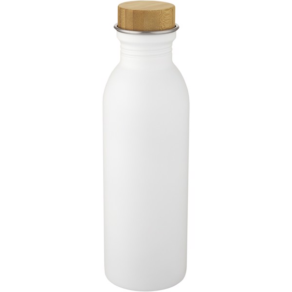 Botella deportiva de una sola pared de acero inoxidable 18/8 con tapa de bambú. No contiene BPA y se ha probado y homologado según la legislación alemana sobre seguridad alimentaria (LFGB). Contenido de ftalatos probado y homologado según la normativa REACH. El bambú utilizado procede de fuentes sostenibles, ecológica y socialmente responsables. Capacidad de 650 ml. Se recomienda lavarla a mano. Se presenta en una caja de regalo de cartón reciclado.
