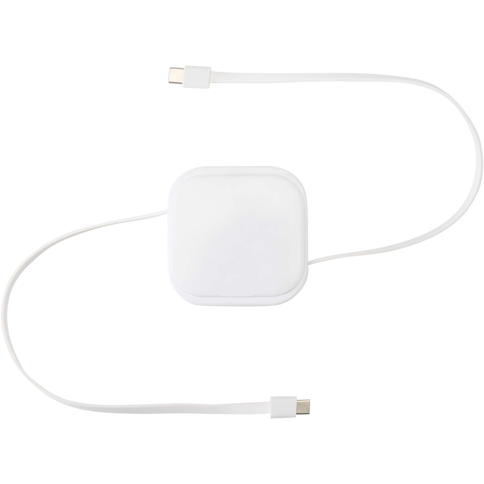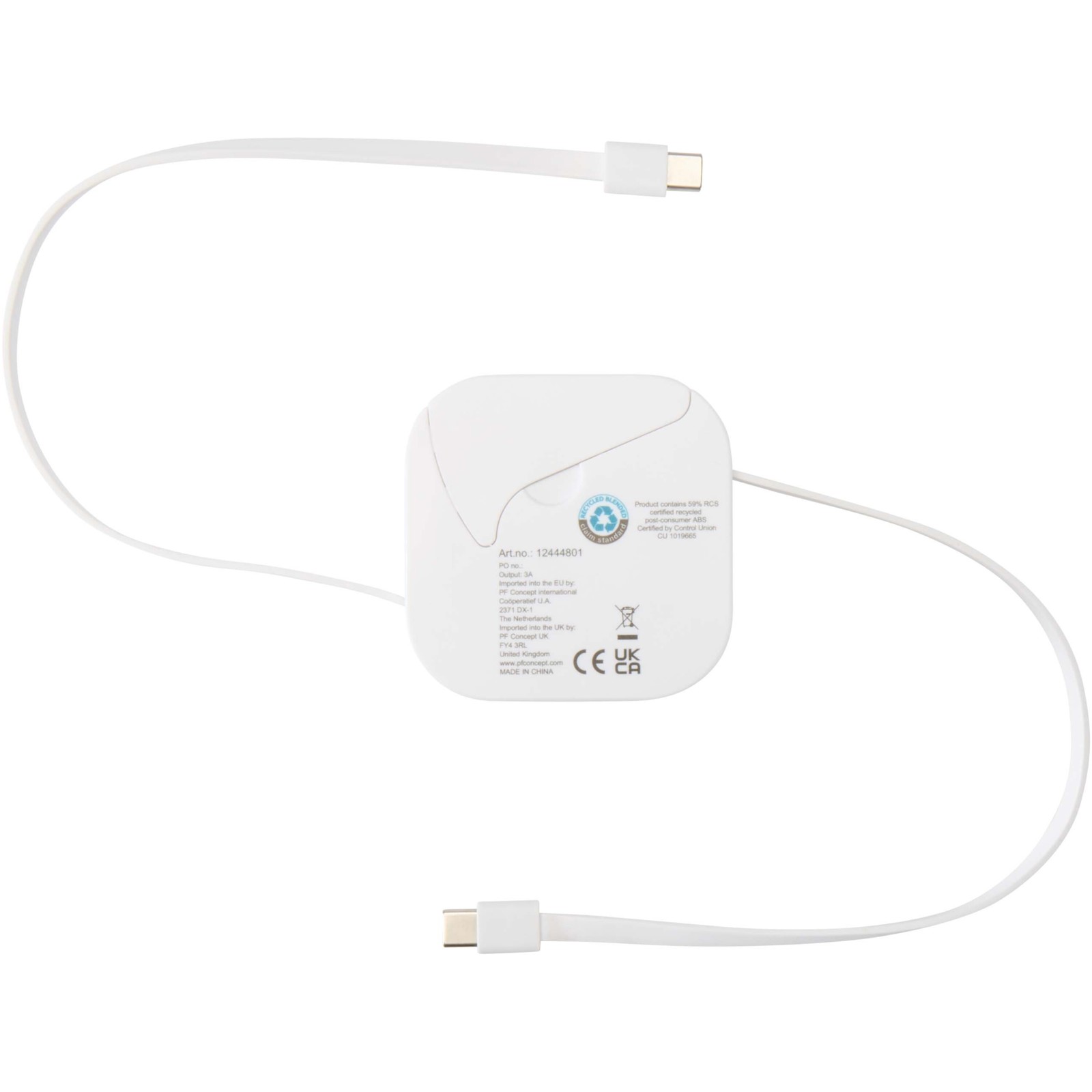 RUBINS. Cable USB retráctil 6 en 1 en ABS reciclado (100% rABS) y bambú - Blanco