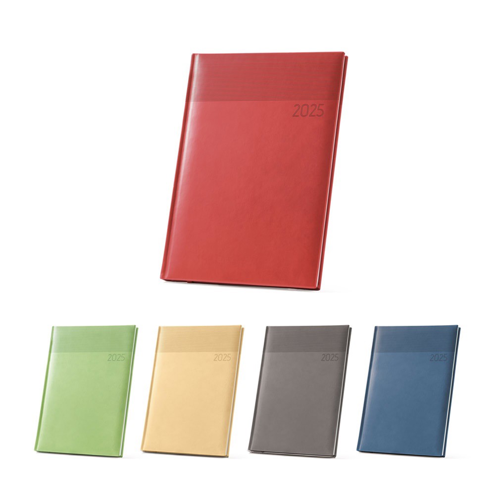 Agenda B5 en PU con estampado y marcapáginas. Está organizado con un plan semanal. 175 x 245 mm