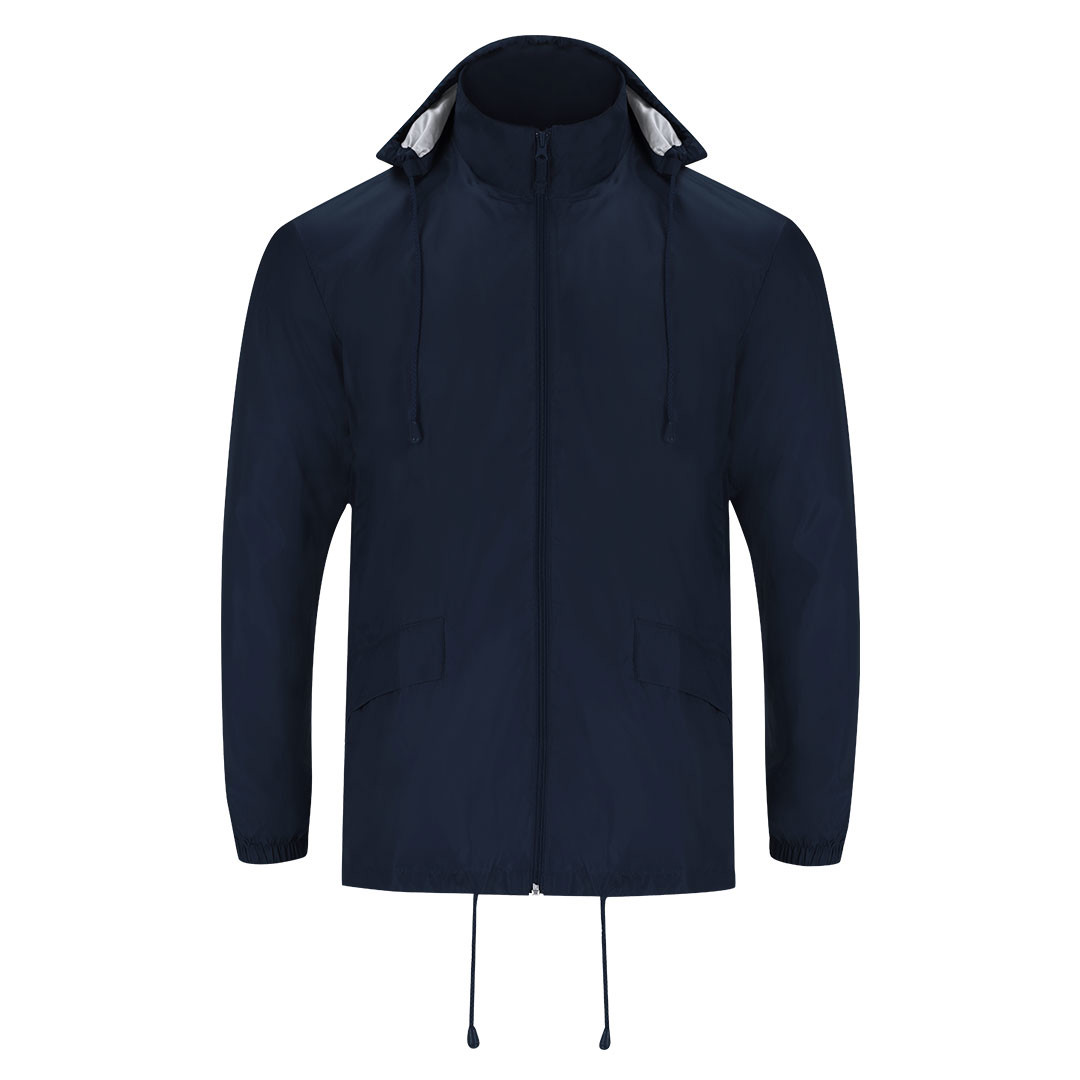 Chubasquero unisex de cuello alto y capucha extraíble. La capucha cuenta con cordones ajustables para un ajuste personalizado y velcro para facilitar su plegado y guardado. Su interior incorpora un recubrimiento de plata. Cuenta con cremallera central y tirador al tono. Incluye: dos bolsillos laterales con solapa, puños elásticos que garantizan un ajuste cómodo y un bajo ajustable con cordones interiores que permiten un ajuste adicional. Dispone de una goma elástica en el interior de uno de los bolsillos, facilitando el plegado y almacenamiento del chubasquero cuando no está en uso.