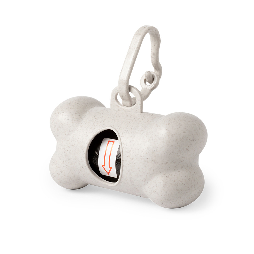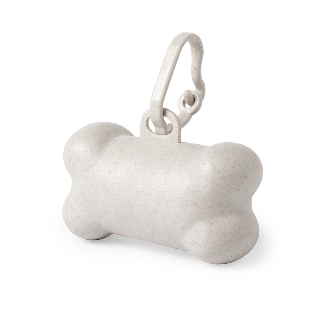 Dispensador de bolsas para mascotas en línea nature, fabricado en fibra de bambú. Con resistente cuerpo y diseño de hueso, mosquetón de transporte a juego y 15 bolsas biodegradables incluidas. 15 Bolsas Biodegradables Incluidas