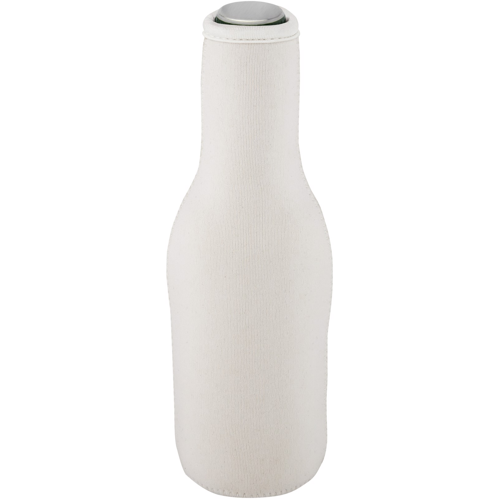 Funda para botellas de neopreno reciclado que se dobla fácilmente para que quepa en el bolsillo o el bolso. Tiene un aislamiento adicional que mantiene la bebida fresca durante más tiempo y hace que la botella sea cómoda de sostener.