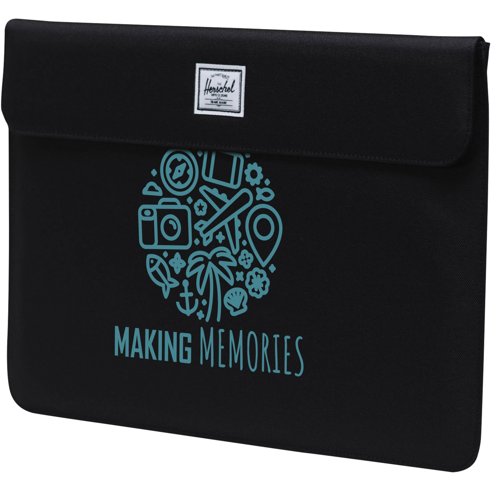 La elegante y aerodinámica funda para portátil "Herschel Spokane" está fabricada con material EcoSystem™ 600D a partir de botellas de agua 100 % recicladas. El forro polar acolchado ofrece protección adicional, y los imanes ocultos proporcionan un elegante mecanismo de apertura y cierre. Guárdalo en la mochila para ir al trabajo o al colegio, o llévalo puesto cuando tengas que viajar ligero de equipaje.