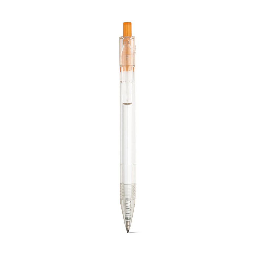 Bolígrafo transparente de 100% rPET con botón de color. Tinta negra. ø11 x 142 mm