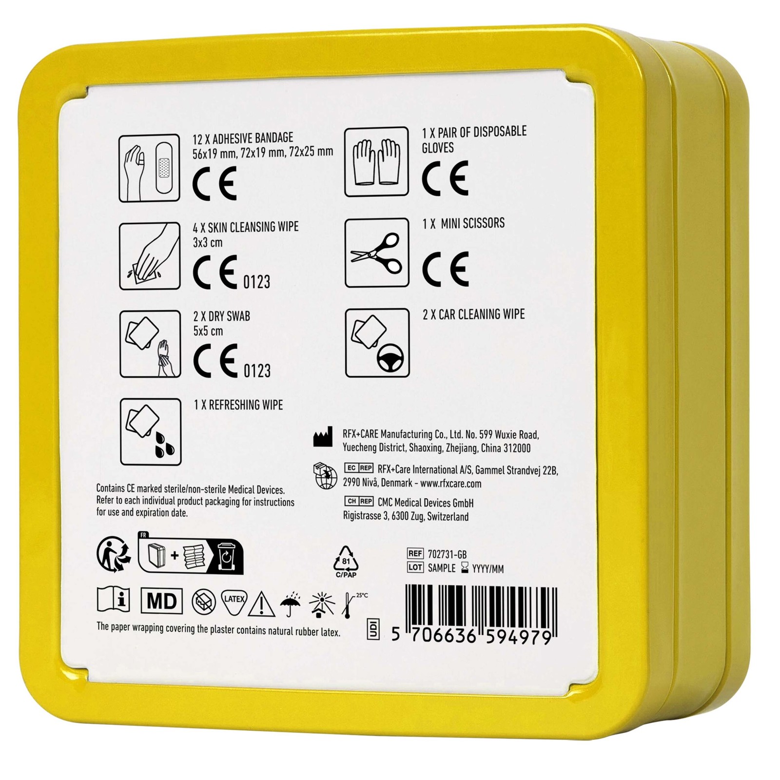 Este botiquín de primeros auxilios compacto es un complemento esencial para cualquier coche, ya que tendrás todo lo necesario en caso de accidentes y lesiones leves durante el viaje. Contiene 12 tiritas resistentes al lavado, 2 bastoncillos para limpiar la piel, 2 bastoncillos secos, 1 par de guantes desechables, un paquete de 2 toallitas para limpiar el coche, 1 toallita refrescante y 1 tijera pequeña. Todos los artículos de primeros auxilios y cuidados incluidos cumplen la normativa aplicable de la UE, por lo que proporcionan una ayuda fiable durante el viaje. Se entrega en una lata reutilizable y reciclable.