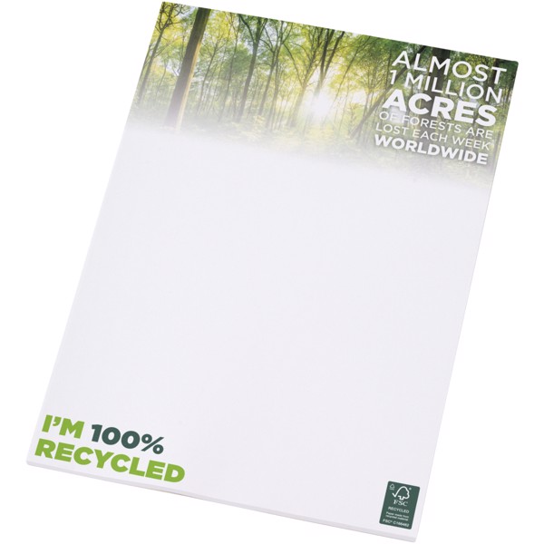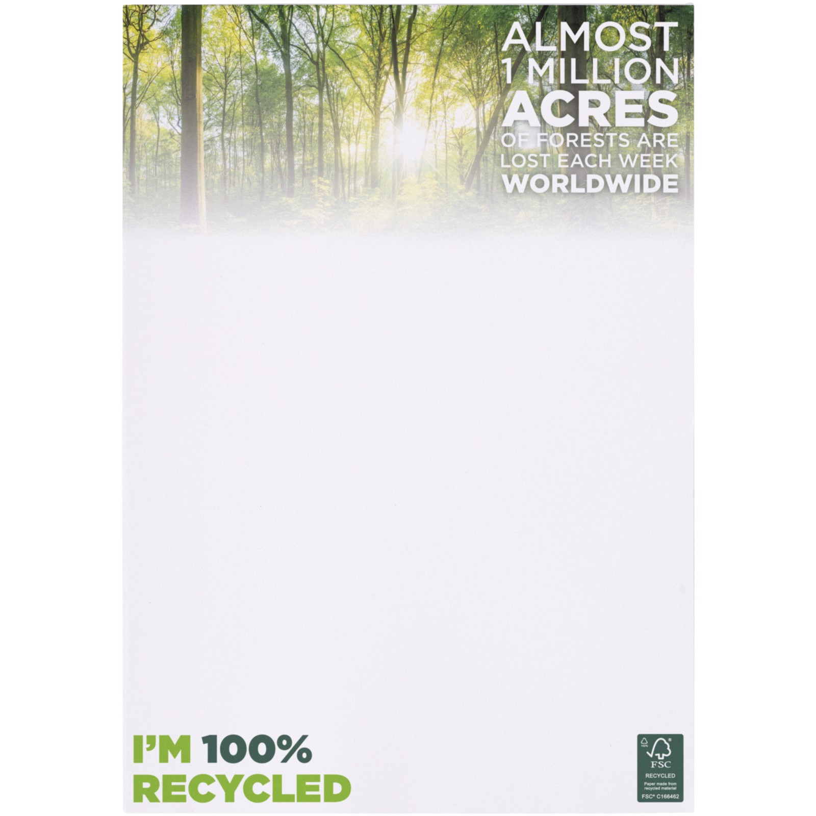 Libreta blanca A4 "Desk-Mate®" de papel reciclado de 80 g/m². Impresión a todo color disponible en cada hoja. Tres tamaños disponibles (25/50/100 hojas).