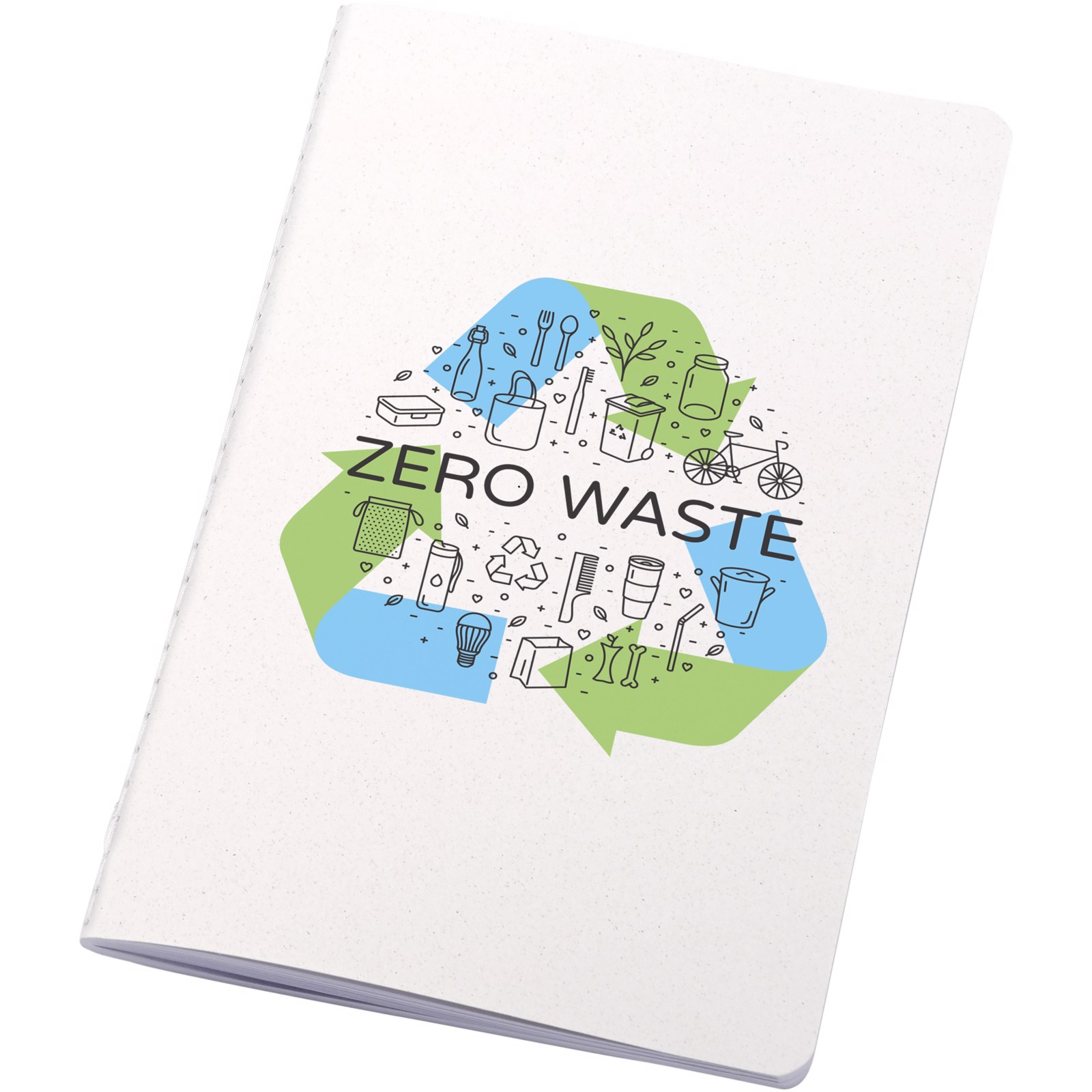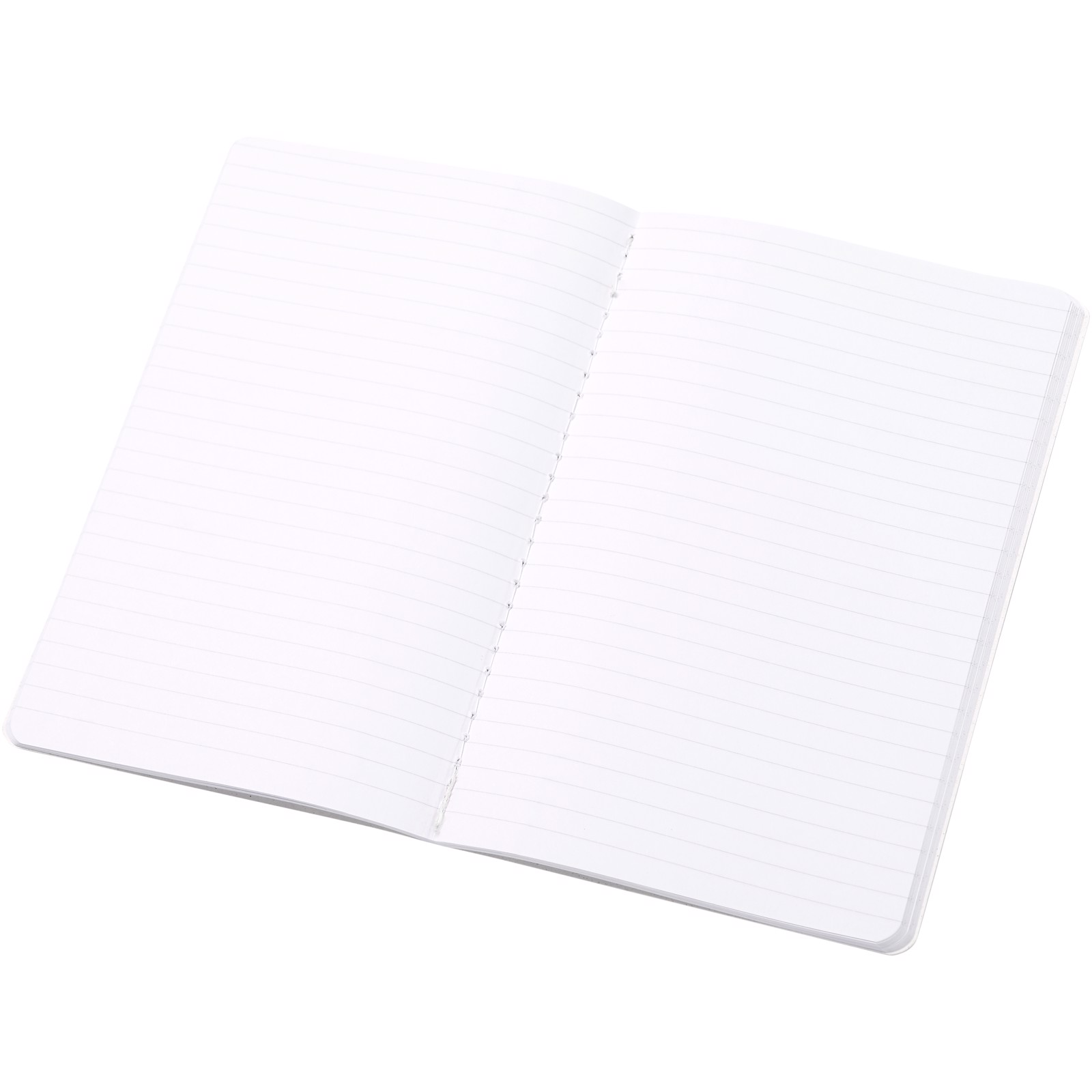 Cuaderno ligero y flexible para tomar notas a diario. La cubierta está fabricada con materiales de origen responsable. La cubierta marrón está hecha a partir de residuos de café (15%), mientras que la cubierta verde contiene residuos de aceitunas (15%); ambos combinados con un 40% de residuos reciclados postconsumo. Presenta costuras blancas visibles en el lomo e incluye 40 hojas, 70 g/m² de papel rayado blanco reciclado de origen responsable. Fabricado en Italia.