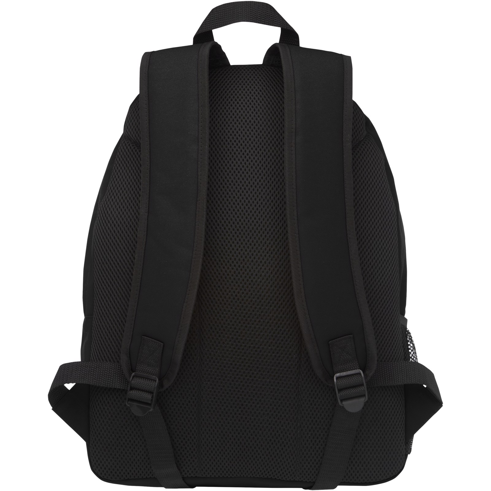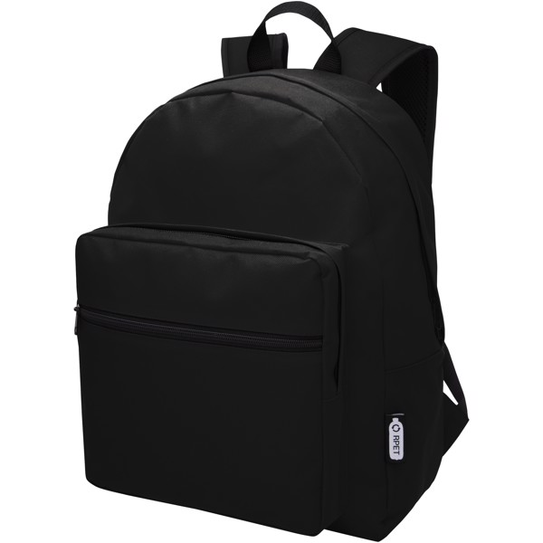 Resistente mochila de plástico 100 % reciclado, que contribuye a la reducción de los desechos plásticos. Cuenta con correas de hombro ajustables, dos compartimentos con cremallera y un bolsillo frontal con cremallera. Para fabricar esta bolsa se reciclaron aproximadamente 15 botellas.