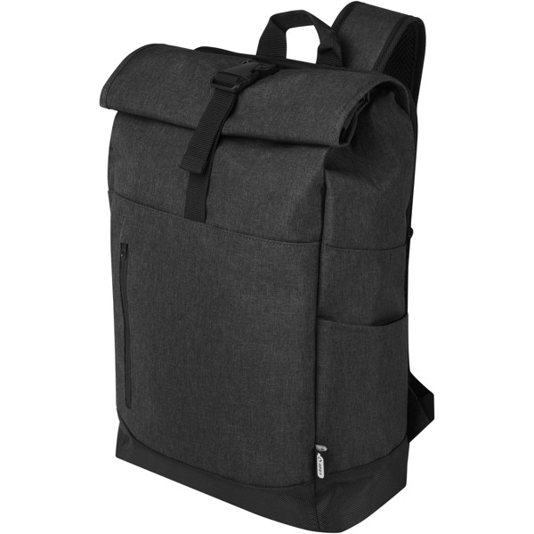 Mochila para portátil de 15,6" con compartimento acolchado, correas acolchadas y ajustables para los hombros, compartimento principal con cremallera y cierre superior, dos asas de transporte y bolsillo frontal con cremallera. Certificada GRS.