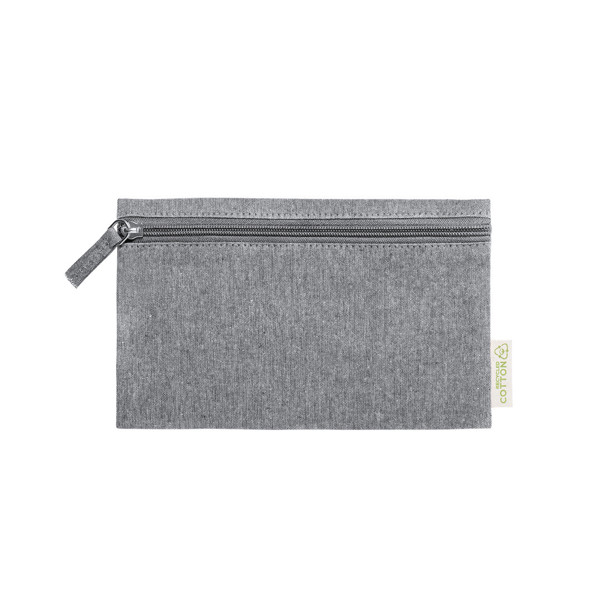 Neceser de línea nature elaborado en algodón reciclado. Compartimento principal de cierre de cremallera y tirador juego, con distintivo algodón reciclado en etiqueta.