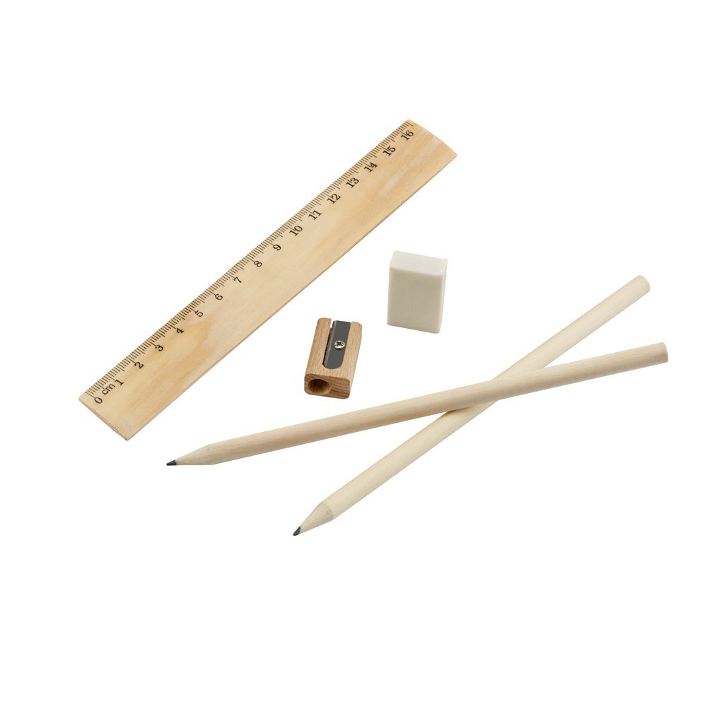 Estuche multiusos de fieltro reciclado (100 % rPET) con diseño cilíndrico y cierre de cremallera. Incluye una regla de 16.5 cm, dos lápices de grafito (HB), una goma de borrar y un sacapuntas. Bolsa: Ø70 x 210 mm