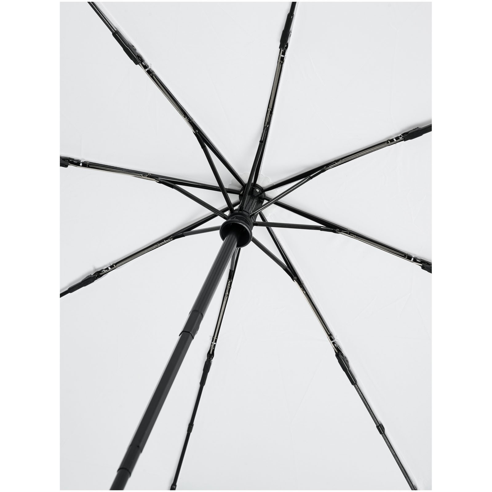 Paraguas plegable de apertura y cierre automáticos con capa externa de poliéster de tafetán de tereftalato de polietileno reciclado. Eje metálico robusto y estructura de alta calidad con varillas de fibra de vidrio que ofrece la máxima flexibilidad en condiciones de viento. Se suministra con una bolsa que se puede almacenar fácilmente en un bolso de mano o una mochila. Se trata de una opción más sostenible gracias al mango de madera y la capa externa de poliéster de tafetán de tereftalato de polietileno reciclado. Disponible en una amplia variedad de colores contemporáneos con una gran zona de decoración en cada uno de los paneles.