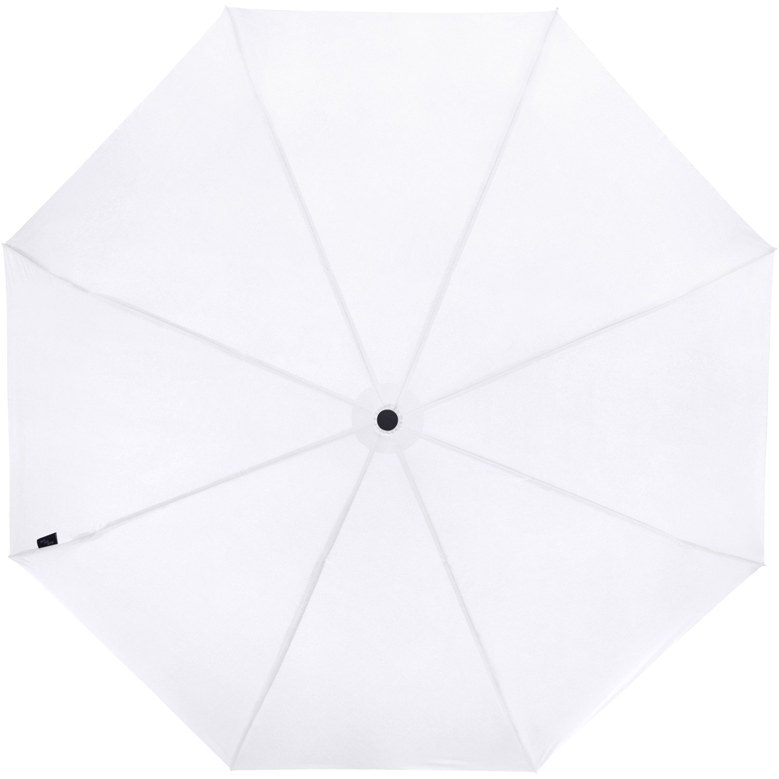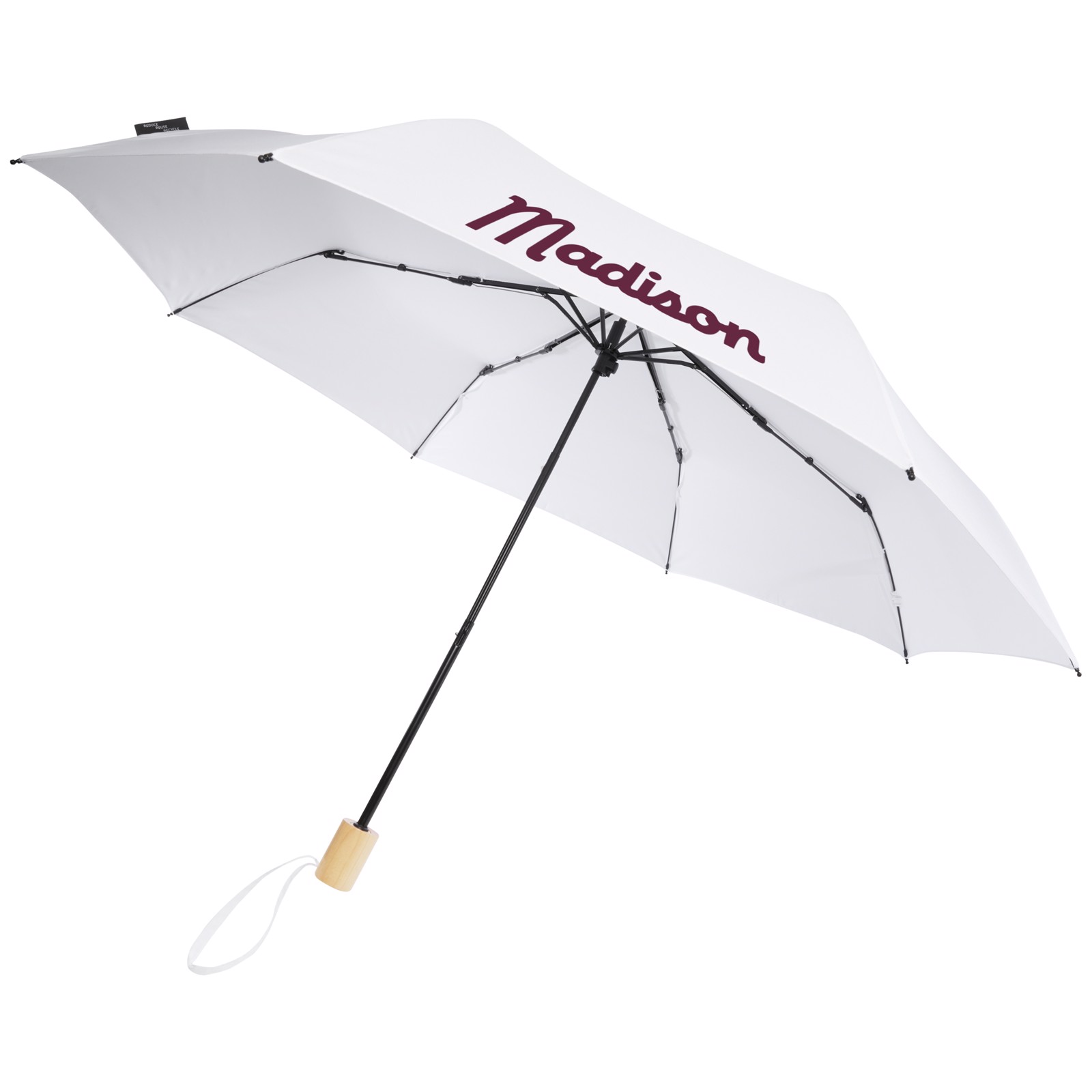 Paraguas manual con capa externa de poliéster de tafetán de tereftalato de polietileno reciclado y mango de madera. Eje metálico robusto y estructura de alta calidad con varillas de fibra de vidrio que ofrece la máxima flexibilidad en condiciones de viento. Se suministra con una bolsa que se puede almacenar fácilmente en un bolso de mano o una mochila. Se trata de una opción más sostenible gracias al mango de madera y la capa externa de poliéster de tafetán de tereftalato de polietileno reciclado. Poliéster de tafetán de tereftalato de polietileno reciclado.