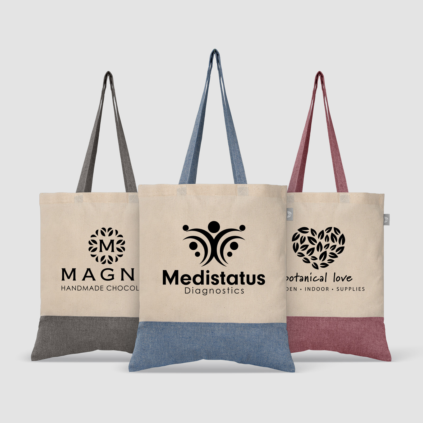 Quebec - 5 oz. Two-Tone Recycled Cotton Tote - Black / Silkscreen