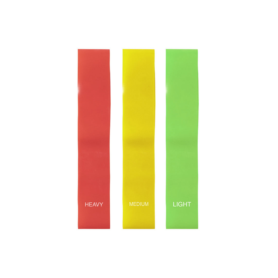 Set de gomas elásticas para los más deportistas. Incluye 3 cintas de 30x5 cm, fabricadas en resistente material TPE y 3 niveles de resistencia: ligera, media y fuerte. Presentado en funda de poliéster con cierre de cordón y accesorio de ajuste. 3 Piezas. Resistencia Baja, Media y Alta. Funda Poliéster
