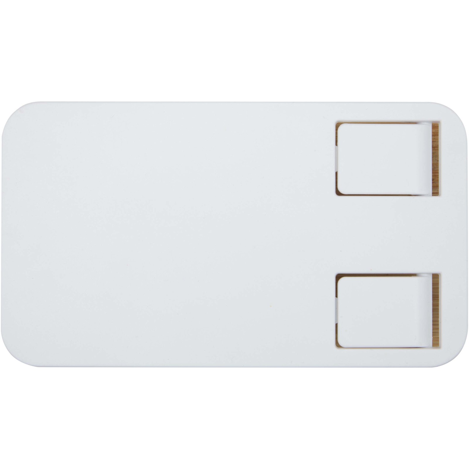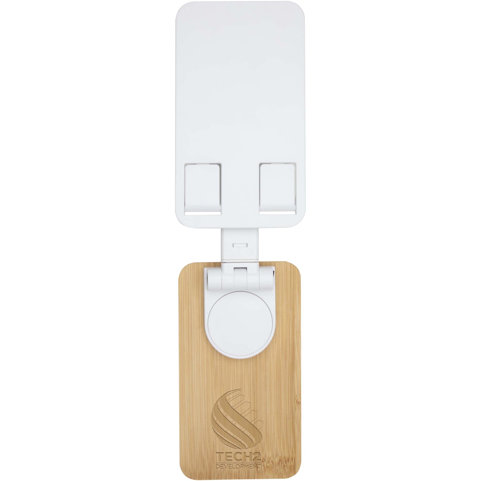 Soporte para teléfono de sobremesa plegable de plástico reciclado con detalles de bambú "Alfirk" - Blanco