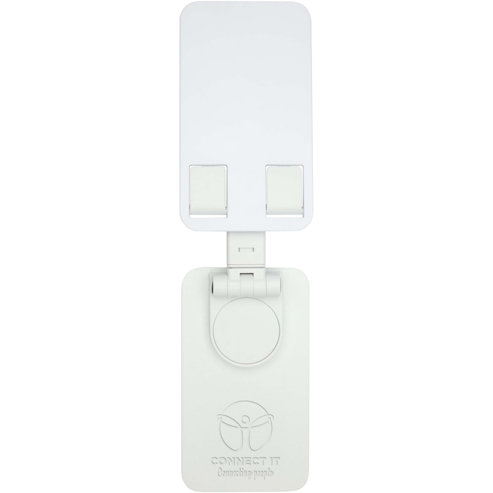 Soporte para teléfono plegable de plástico reciclado con soporte metálico para escritorio "Alhena" - Blanco