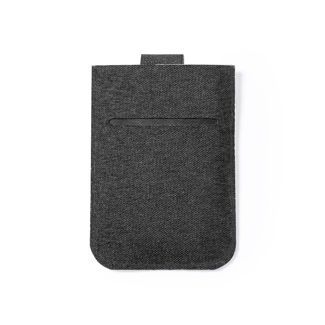 Elegante tarjetero fabricado en poliéster RPET de acabado en color negro. Con cierre imantado, capacidad para 5 tarjetas y mecanismo de extracción tirando de la cinta de cierre. Con tecnología de seguridad RFID (Identificación por Radio Frecuencia) que mantiene seguros tus dispositivos de transmisión de identidad. Distintivos RPET y RFID en el exterior. El material RPET se elabora a partir de plástico reciclado, para así fomentar la reutilización de residuos plásticos y ayudar a la sostenibilidad del planeta. Protector RFID. 5 Compartimentos