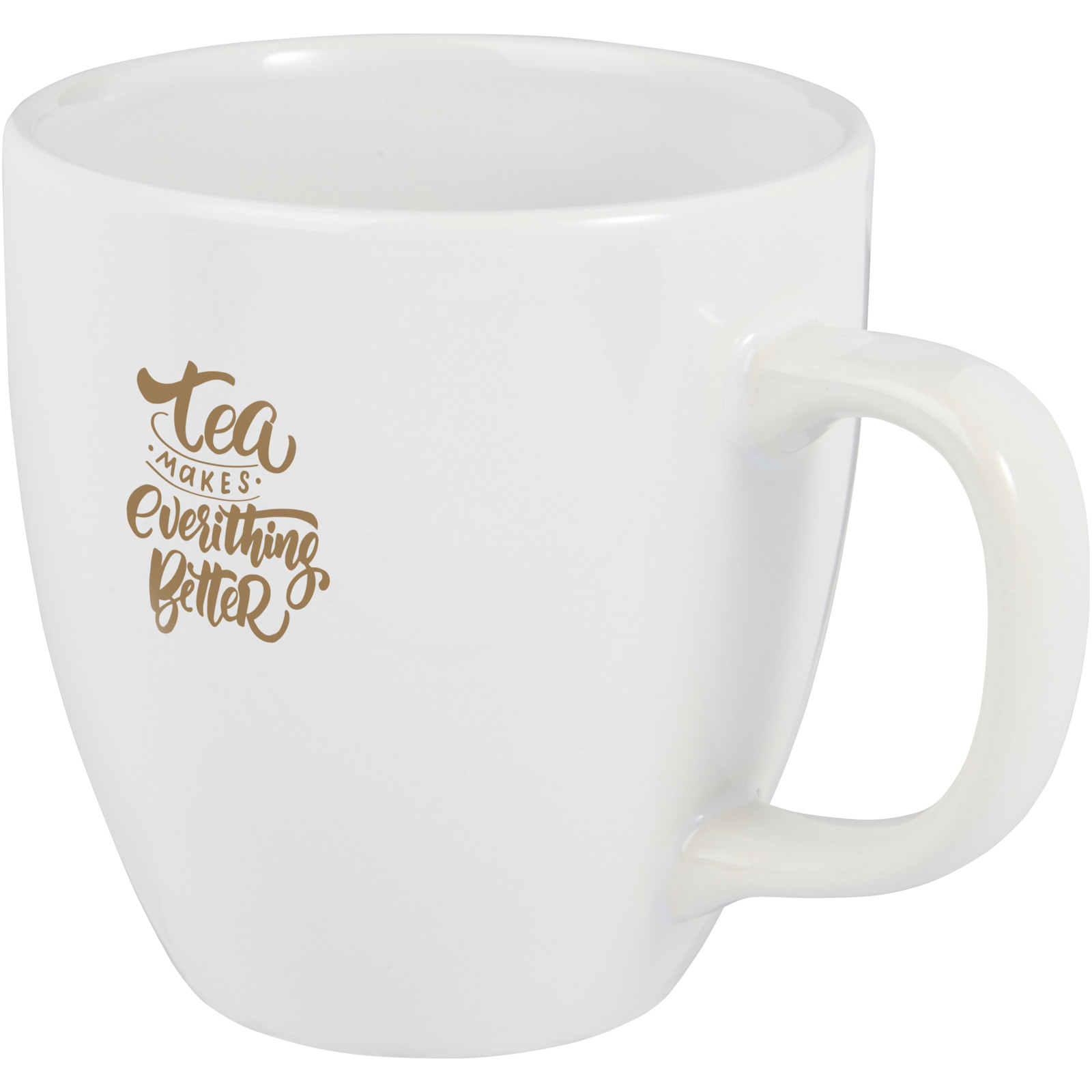 La taza de cerámica "Moni" tiene un acabado brillante de moda que le añade un toque elegante. Cuenta con un asa grande que ofrece un agarre cómodo y firme. La taza es lo suficientemente versátil como para usarla con bebidas calientes y frías, lo que le permite disfrutar de café, té, sopa y más. Capacidad de 430 ml. Todos los métodos de grabado son aptos para lavavajillas. Se presenta en una caja de regalo de cartón reciclado.