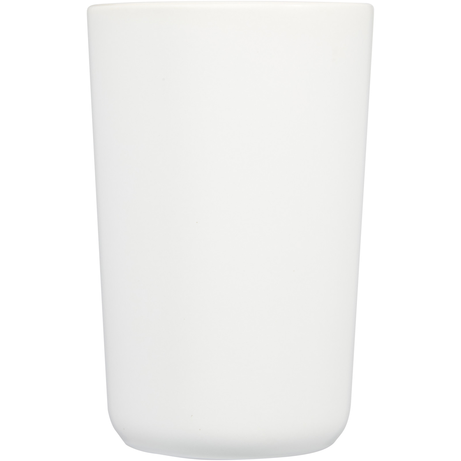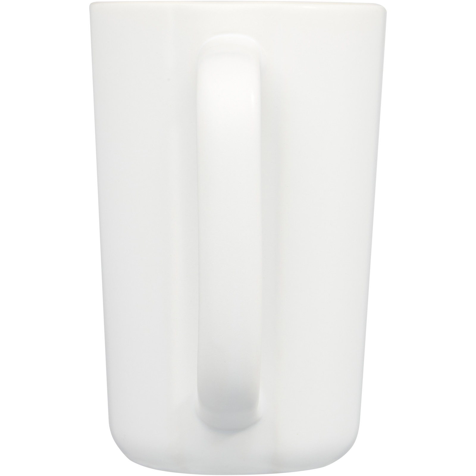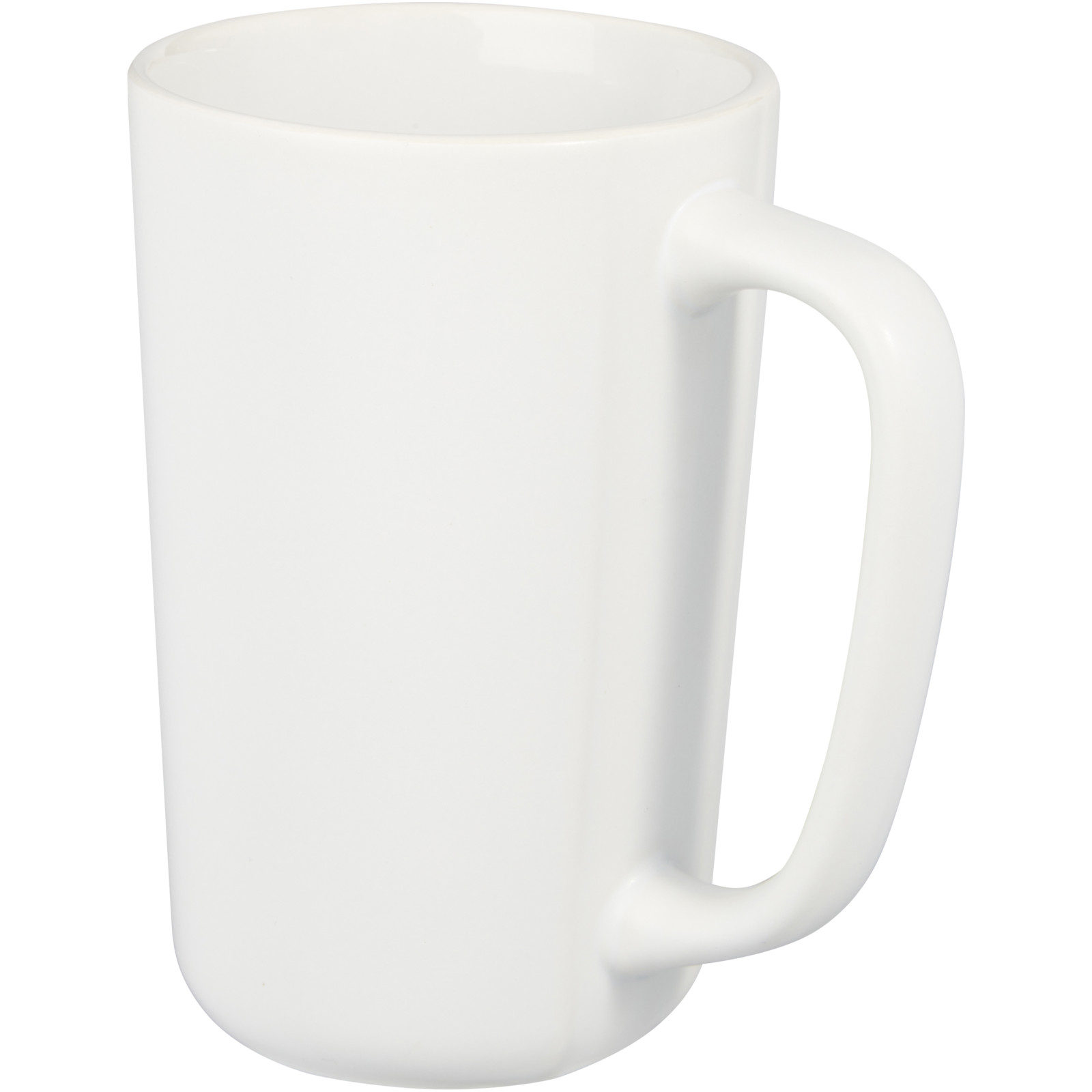 Taza de cerámica contemporánea de gran tamaño con acabado mate en el exterior. La taza "Perk" cuenta con una gran superficie, ideal para la máxima exposición del logotipo. Todos los métodos de grabado son aptos para lavavajillas. Capacidad de 480 ml. Se presenta en una caja de regalo de cartón reciclado.