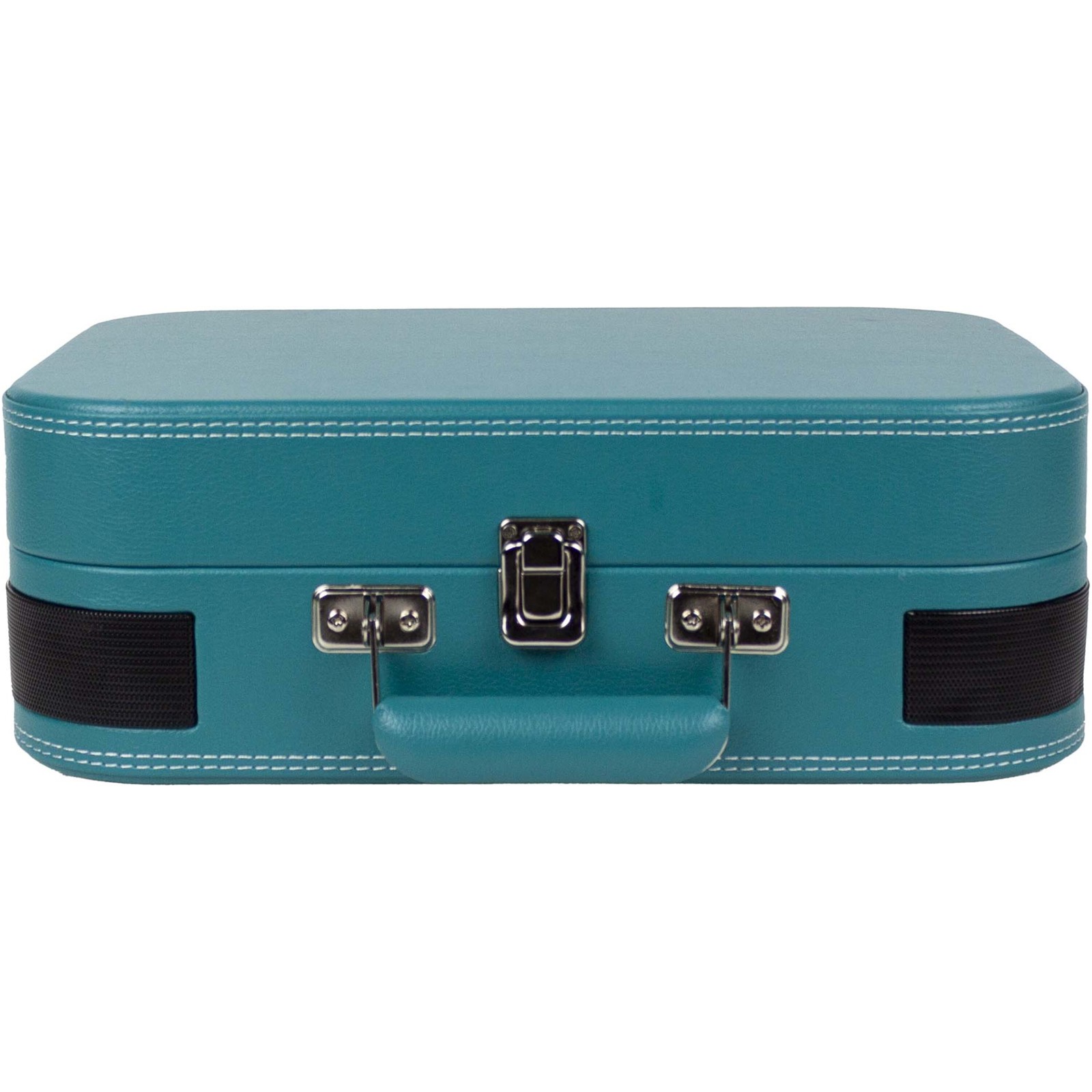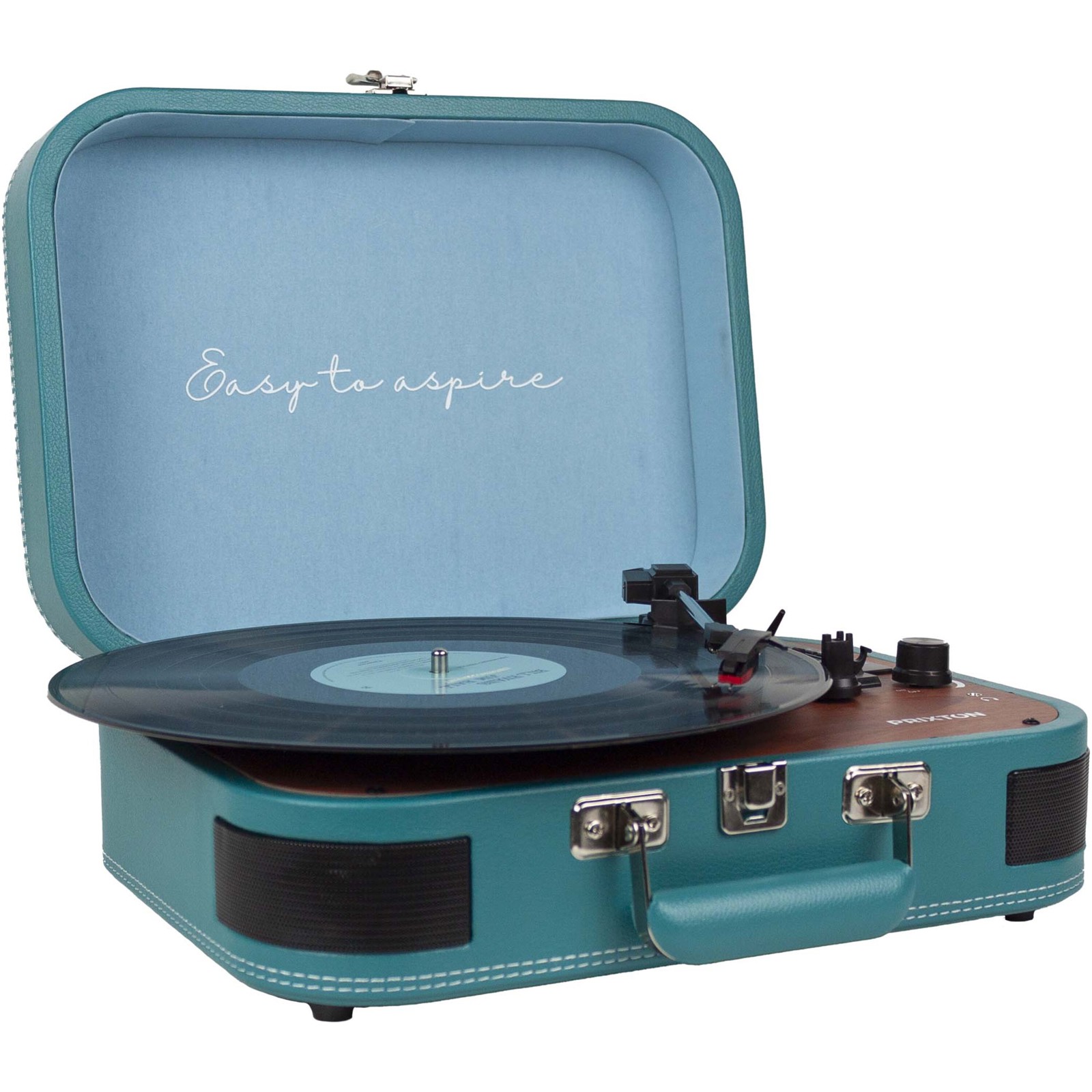 Tocadiscos de vinilo y reproductor de música con Bluetooth® 5.0, USB, TF y radio FM. Puede digitalizar un vinilo a formato WAV a través de la entrada USB y la ranura TF. Tiene salida de audio RCA y se entrega con un par de auriculares. Incluye una aguja de rubí para reproducir discos con delicadeza. Diseñado en forma de maletín. El tocadiscos se puede conectar con un dispositivo móvil a través de Bluetooth® para utilizar la función de altavoz.