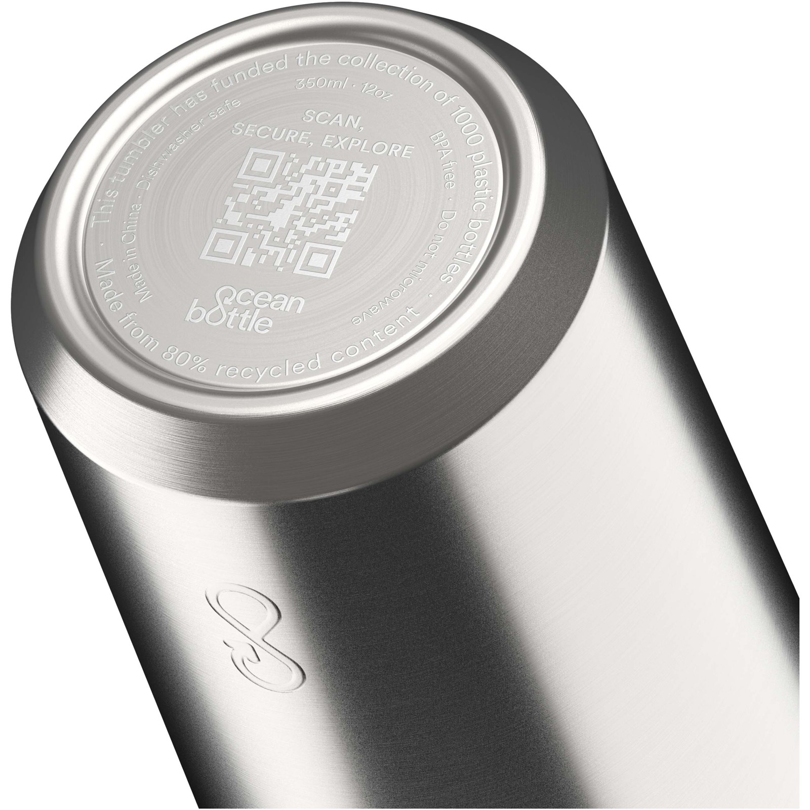 El vaso "Ocean Bottle" de 350 ml tiene aislamiento doble para mantener las bebidas calientes durante cuatro horas y frías durante diez. Cabe perfectamente en la mayoría de las cafeteras, así como en la mayoría de los portavasos de los automóviles. Cada taza de viaje es totalmente neutra en carbono y sirve para financiar la recogida de 1000 botellas de plástico para mejorar los medios de vida en las comunidades costeras. El vaso está fabricado con un 90 % de acero inoxidable reciclado y otros materiales reciclados. Se presenta en una caja de regalo de cartón reciclado de origen responsable.